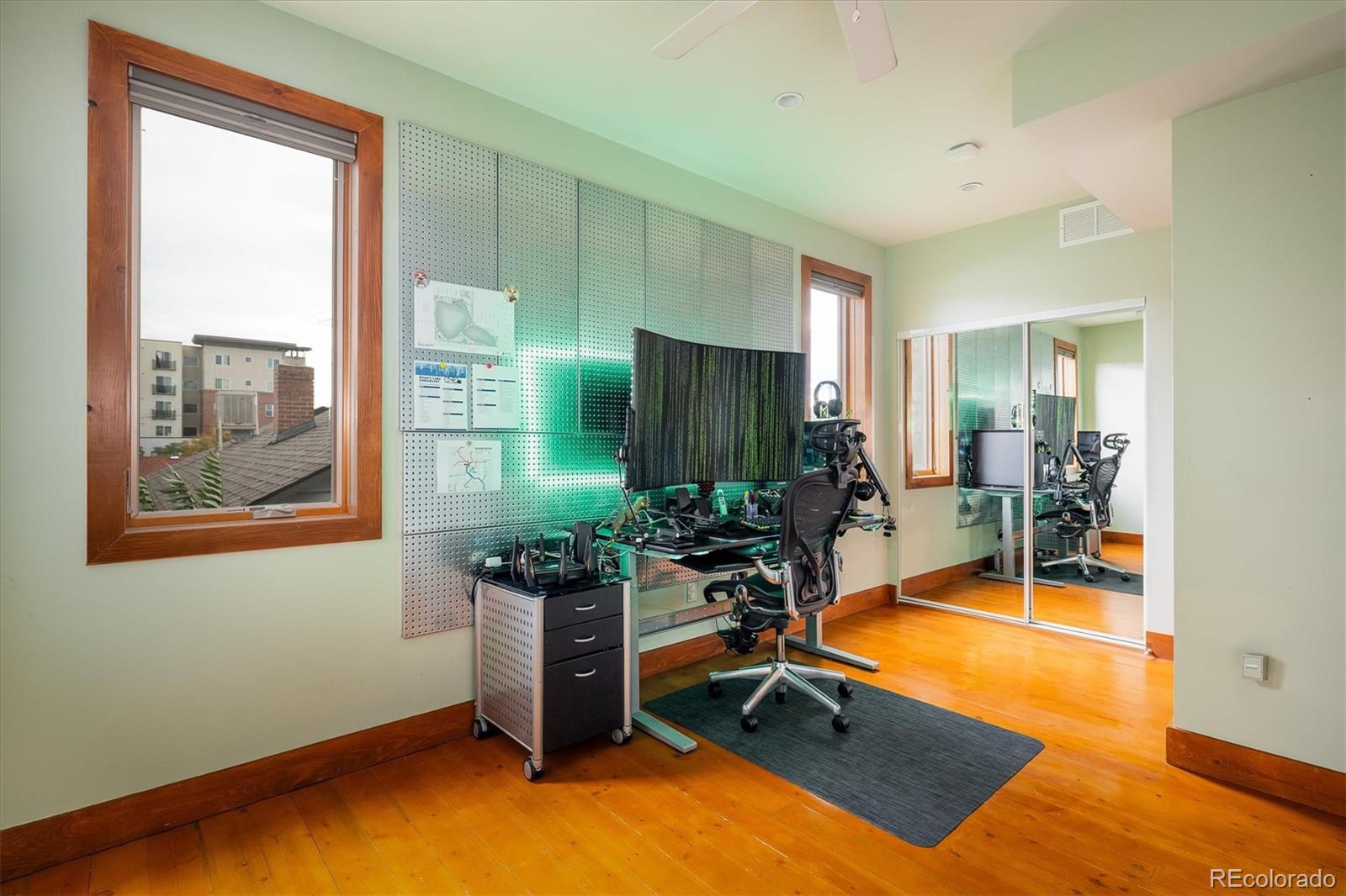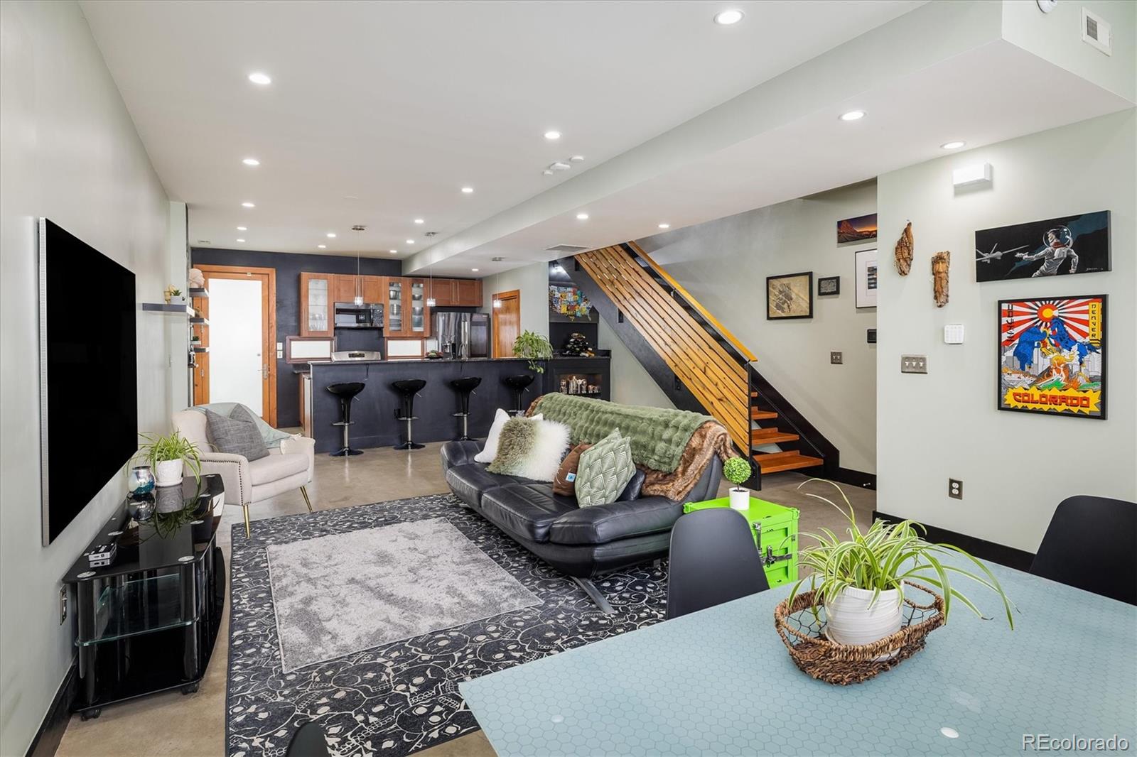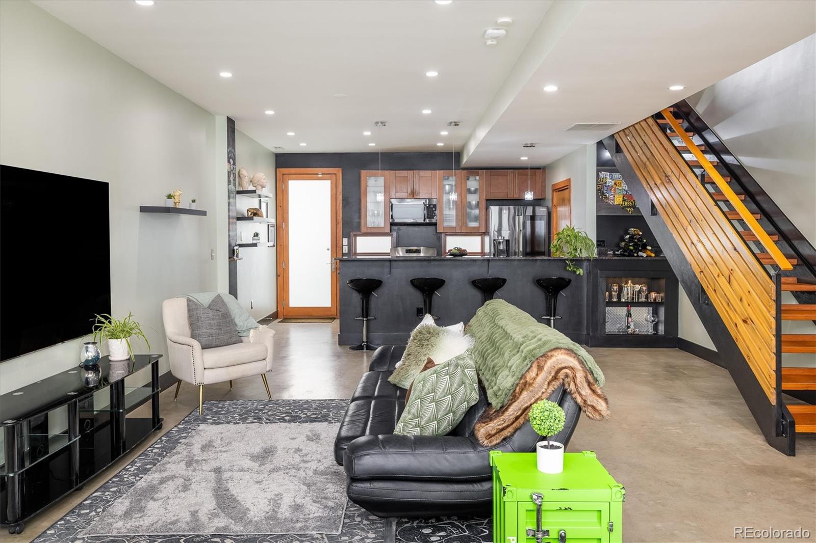 This exceptional Sloan's Lake townhouse offers a rare, thoughtfully designed layout, a prime walkable location, and energy-efficient features--including a fully owned solar panel system. Unlike most townhomes, the main living area is located on the ground floor, creating an open and airy space with soaring ceilings, perfect for entertaining. You'll have plenty of room for a large sectional couch and dining table, plus the kitchen island/peninsula can easily accommodate up to six stools. The first floor also includes a convenient pantry and a powder room. On the second floor, you'll find two spacious bedrooms, a full bathroom, and laundry. The third floor is dedicated to an impressive primary suite featuring vaulted ceilings, a five-piece bath, and a private north-facing deck with partial views of Sloan's Lake. Walkable to popular spots like Alamo Draft House, Joyride Brewing, and Edgewater Marketplace, this home also offers quick access to downtown and the surrounding areas of Northwest and Metro Denver. With its unique floor plan and meticulous care by the current owners, this townhouse is a must-see.