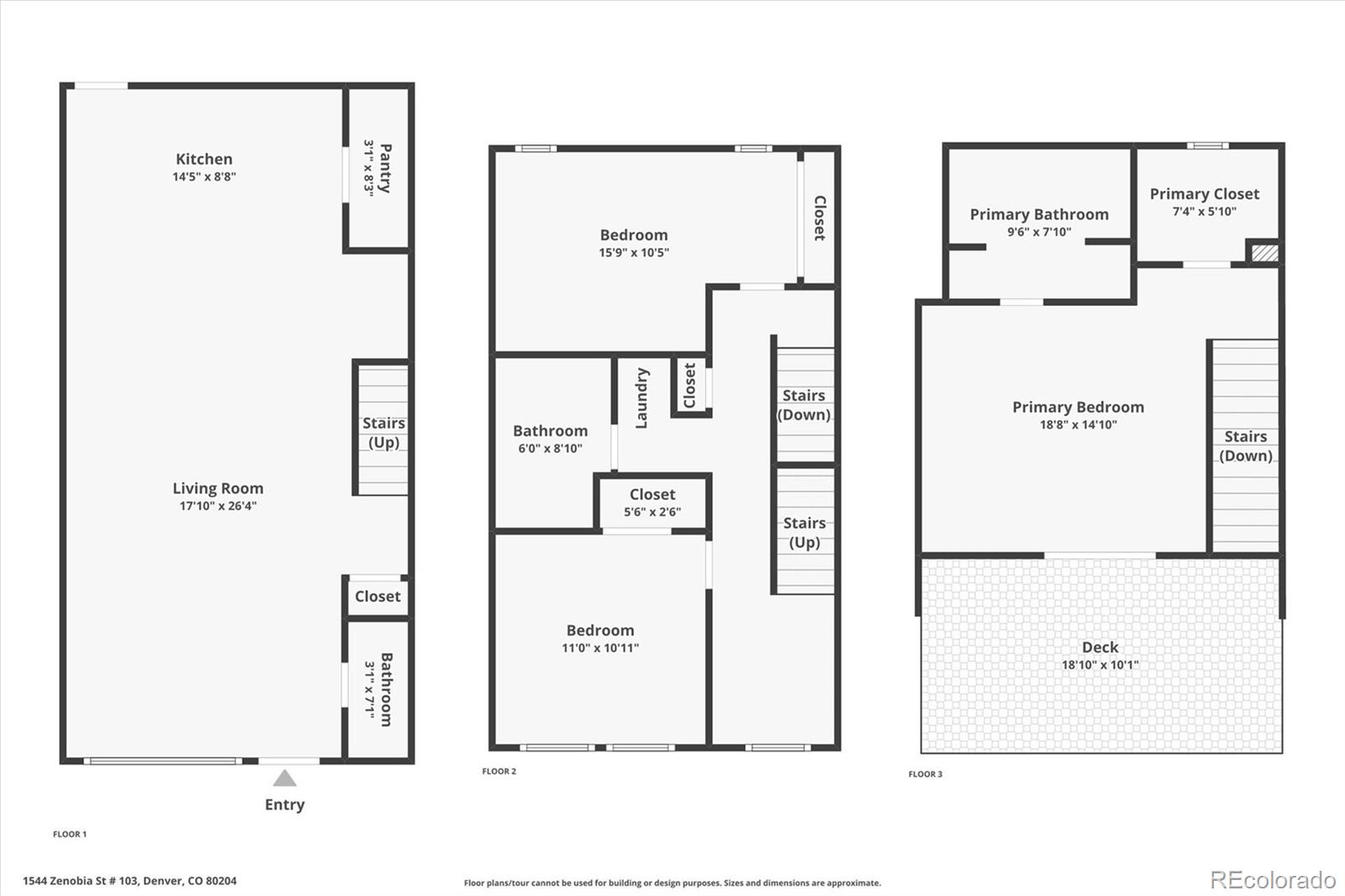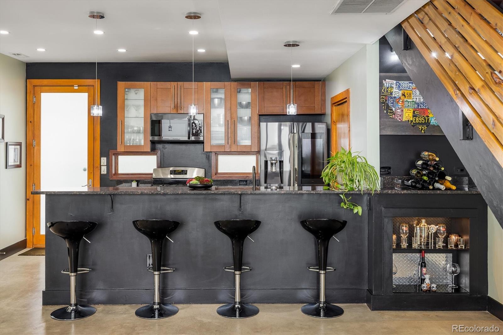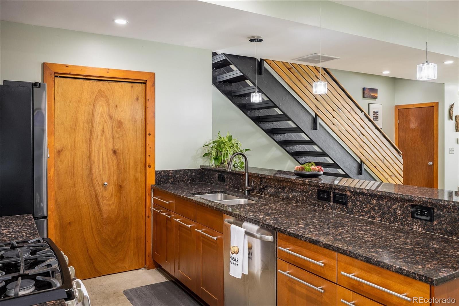 This exceptional Sloan's Lake townhouse offers a rare, thoughtfully designed layout, a prime walkable location, and energy-efficient features--including a fully owned solar panel system. Unlike most townhomes, the main living area is located on the ground floor, creating an open and airy space with soaring ceilings, perfect for entertaining. You'll have plenty of room for a large sectional couch and dining table, plus the kitchen island/peninsula can easily accommodate up to six stools. The first floor also includes a convenient pantry and a powder room. On the second floor, you'll find two spacious bedrooms, a full bathroom, and laundry. The third floor is dedicated to an impressive primary suite featuring vaulted ceilings, a five-piece bath, and a private north-facing deck with partial views of Sloan's Lake. Walkable to popular spots like Alamo Draft House, Joyride Brewing, and Edgewater Marketplace, this home also offers quick access to downtown and the surrounding areas of Northwest and Metro Denver. With its unique floor plan and meticulous care by the current owners, this townhouse is a must-see.
