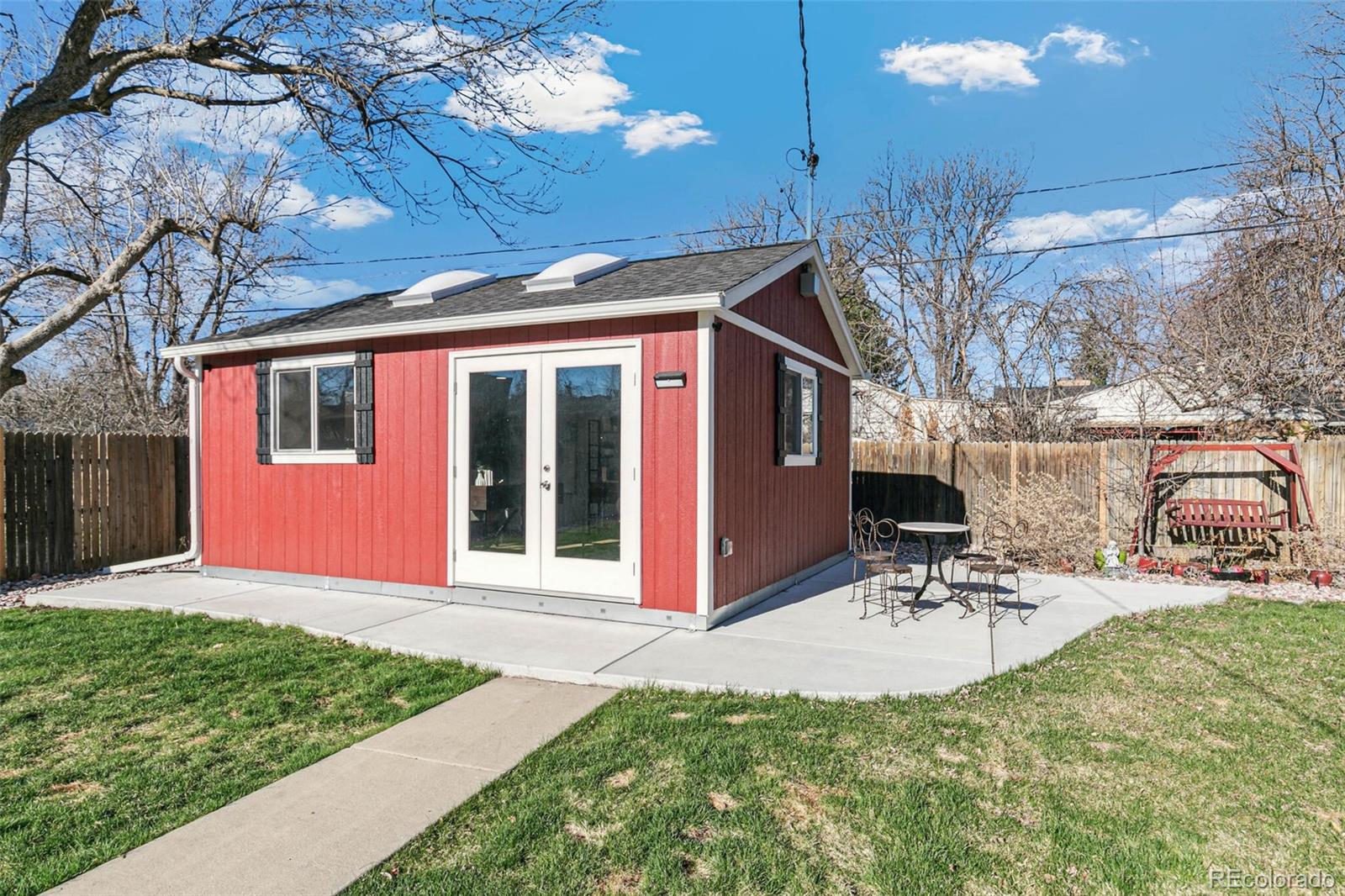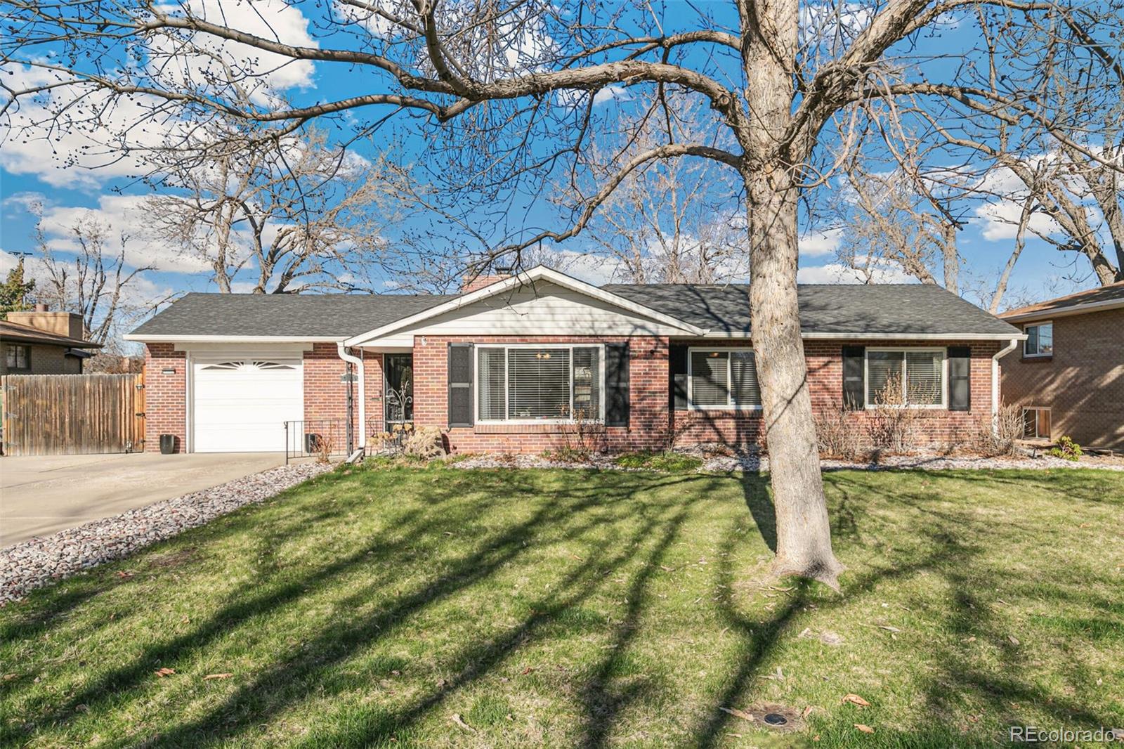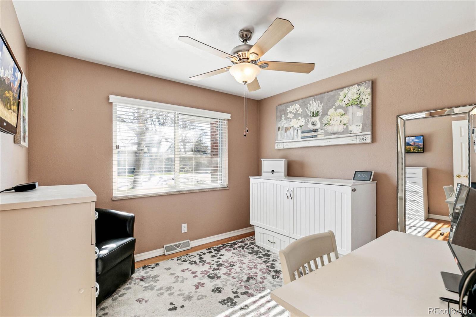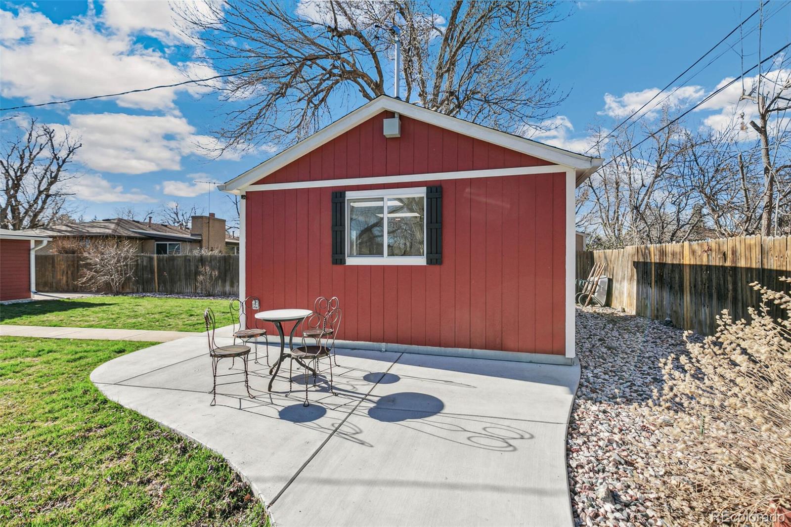 Nestled on an oversized lot in Wheat Ridge, this charming mid-century red brick ranch has been lovingly updated and maintained. Step inside to find coved ceilings, hardwood floors, and an open floor plan, creating a warm and inviting atmosphere throughout the main living areas. The kitchen has been tastefully updated with new countertops, stainless steel appliances, and brand new flooring. Enjoy a finished sunroom that provides additional living space and serves as a quiet retreat with west-facing windows framing picturesque Colorado sunsets. Three good-sized bedrooms, each outfitted with custom storage systems in the closets to maximize space and organization. Primary bath recently updated. Discover an ADDITIONAL 320 SF of living space in the newly constructed STUDIO at the rear of the property. Perfect for a home office, art studio, game room, playroom or gym, this space opens up a world of possibilities. Situated on almost a quarter acre, the backyard is a true sanctuary featuring a cobblestone patio, mature shade trees, and a perennial garden adorned with lilies and roses, offering tranquility and beauty. Attached garage plus additional parking pad in back and oversized driveway. Major system updates include new electrical panel (2022), new A/C (2021), added split system in sunroom, added additional water heater, roof replaced in 2017. Enjoy easy access to the Clear Creek Trail, Anderson Park, Ridge at 38th shopping and dining, Olde Town Arvada and the vibrant Tennyson Street corridor. Quick connection to I-70 and proximity to light rail makes commuting to downtown Denver or heading to the mountains a breeze. You will love living here!