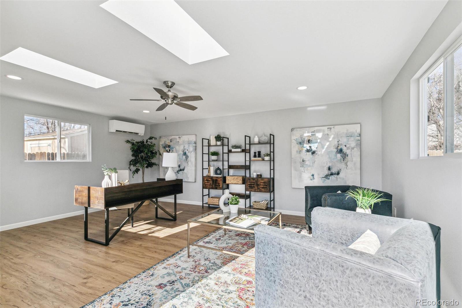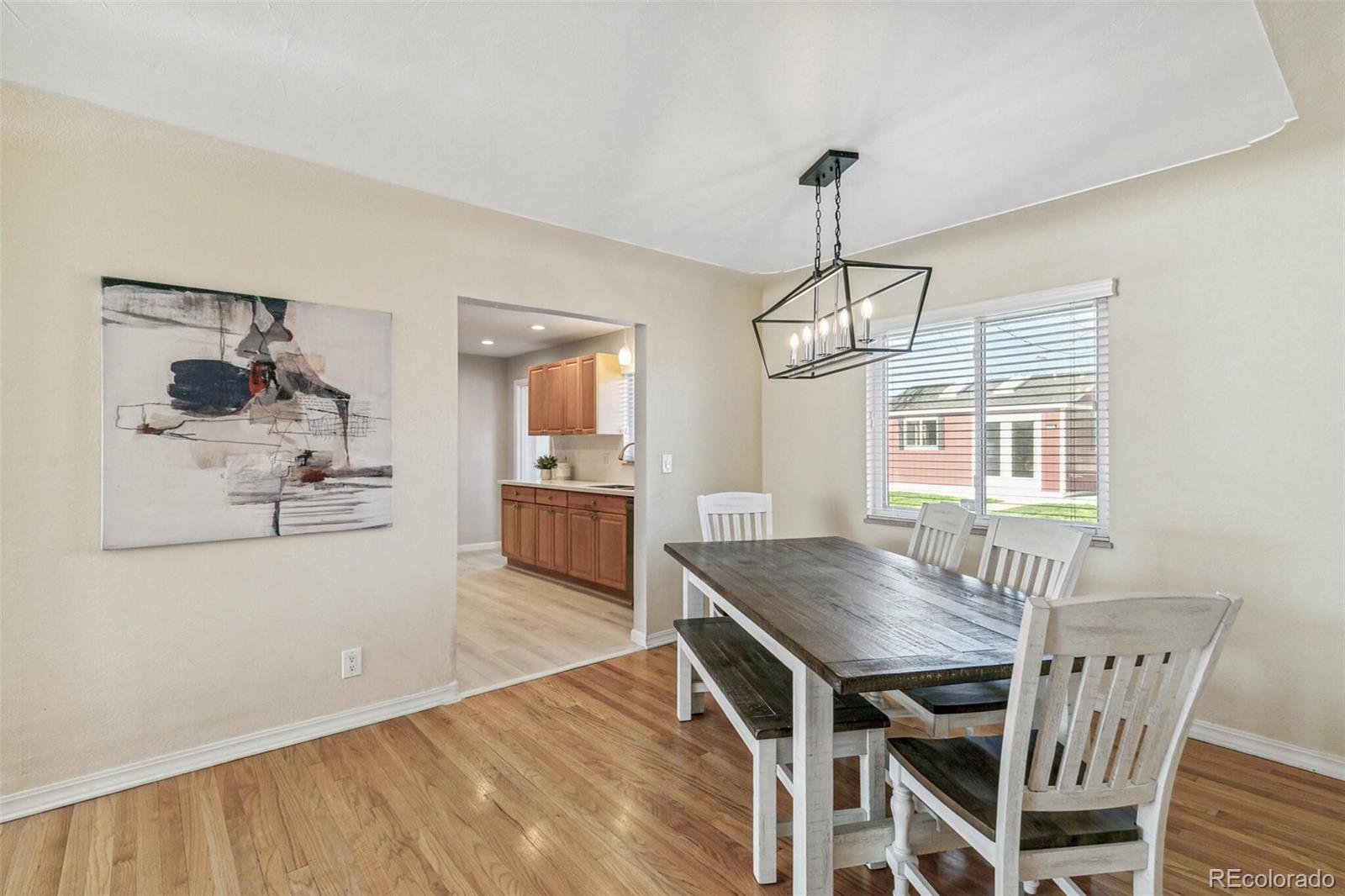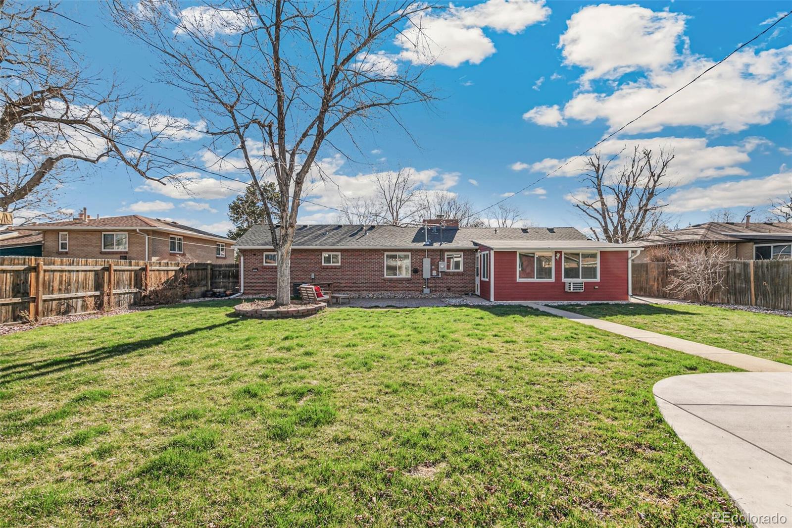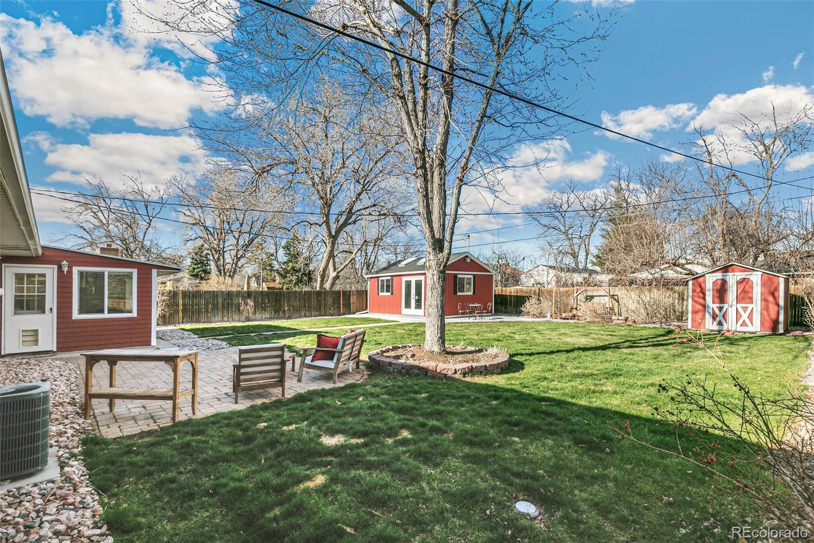 Nestled on an oversized lot in Wheat Ridge, this charming mid-century red brick ranch has been lovingly updated and maintained. Step inside to find coved ceilings, hardwood floors, and an open floor plan, creating a warm and inviting atmosphere throughout the main living areas. The kitchen has been tastefully updated with new countertops, stainless steel appliances, and brand new flooring. Enjoy a finished sunroom that provides additional living space and serves as a quiet retreat with west-facing windows framing picturesque Colorado sunsets. Three good-sized bedrooms, each outfitted with custom storage systems in the closets to maximize space and organization. Primary bath recently updated. Discover an ADDITIONAL 320 SF of living space in the newly constructed STUDIO at the rear of the property. Perfect for a home office, art studio, game room, playroom or gym, this space opens up a world of possibilities. Situated on almost a quarter acre, the backyard is a true sanctuary featuring a cobblestone patio, mature shade trees, and a perennial garden adorned with lilies and roses, offering tranquility and beauty. Attached garage plus additional parking pad in back and oversized driveway. Major system updates include new electrical panel (2022), new A/C (2021), added split system in sunroom, added additional water heater, roof replaced in 2017. Enjoy easy access to the Clear Creek Trail, Anderson Park, Ridge at 38th shopping and dining, Olde Town Arvada and the vibrant Tennyson Street corridor. Quick connection to I-70 and proximity to light rail makes commuting to downtown Denver or heading to the mountains a breeze. You will love living here!