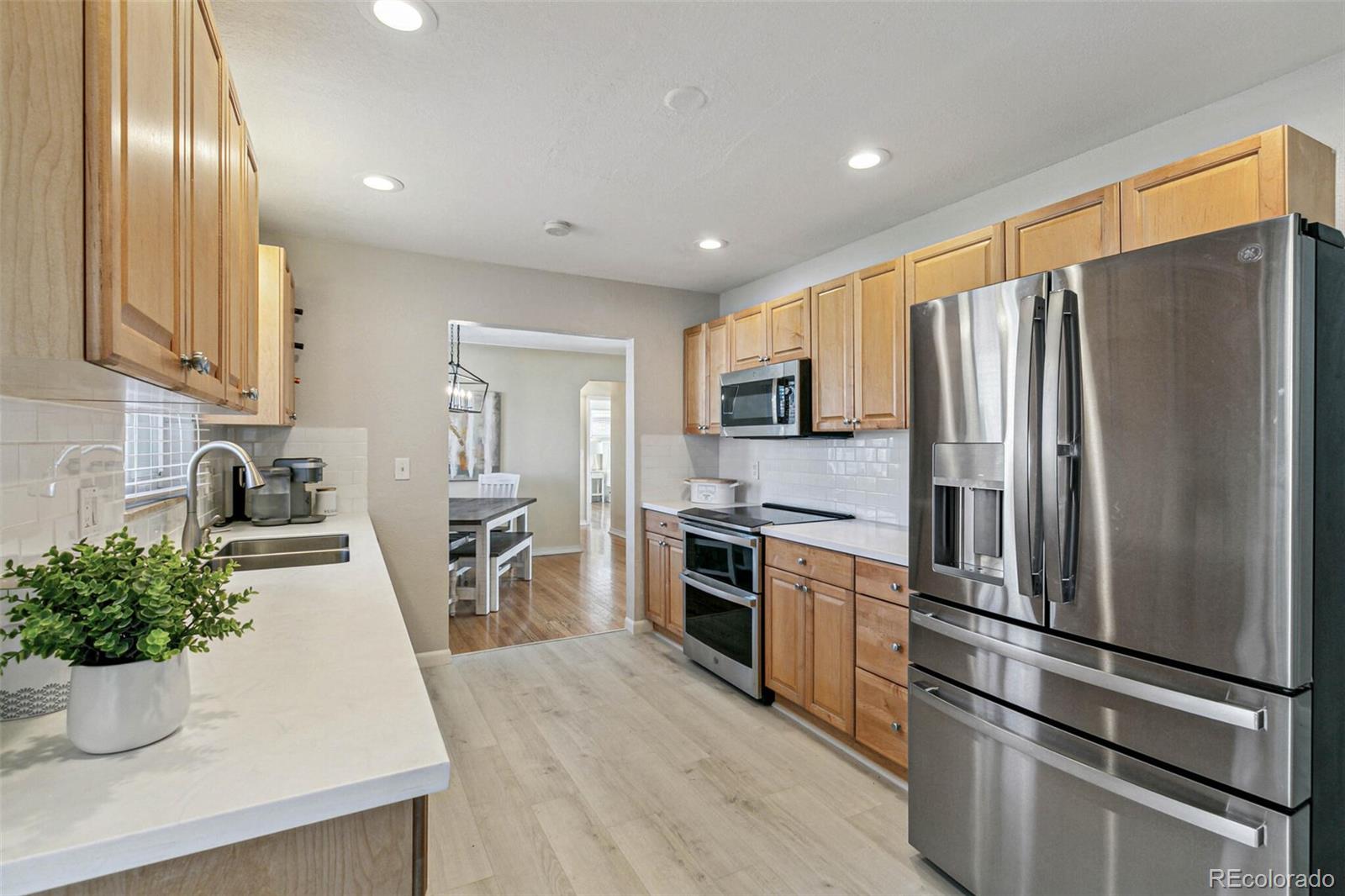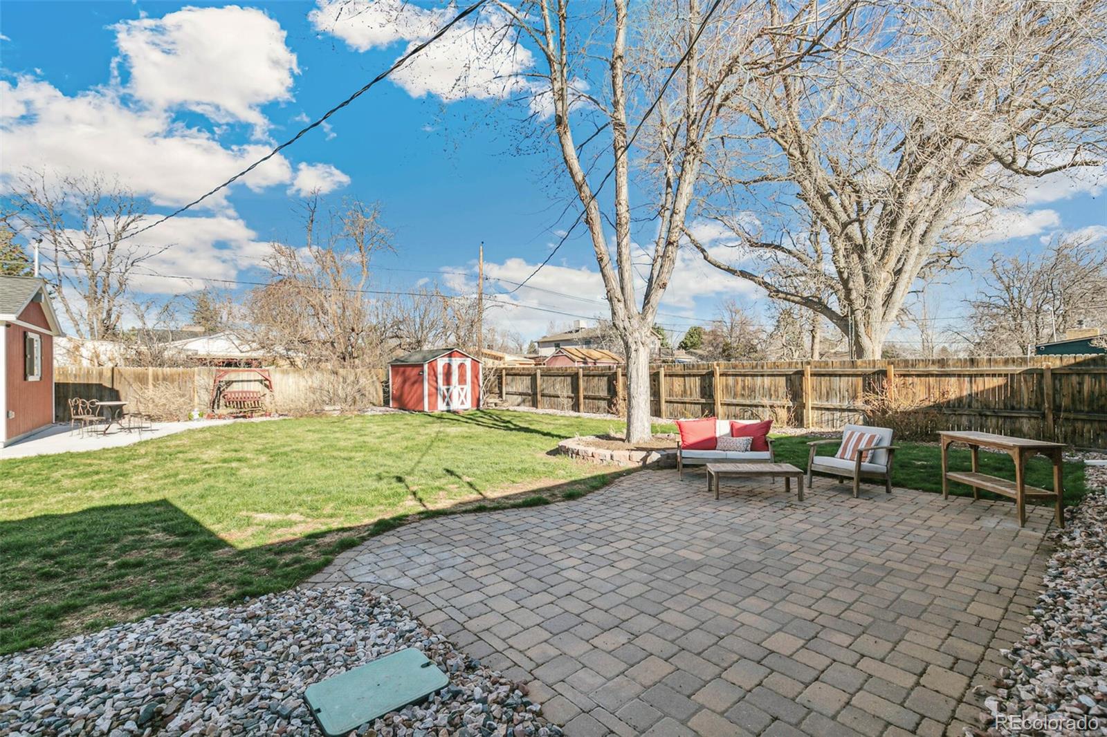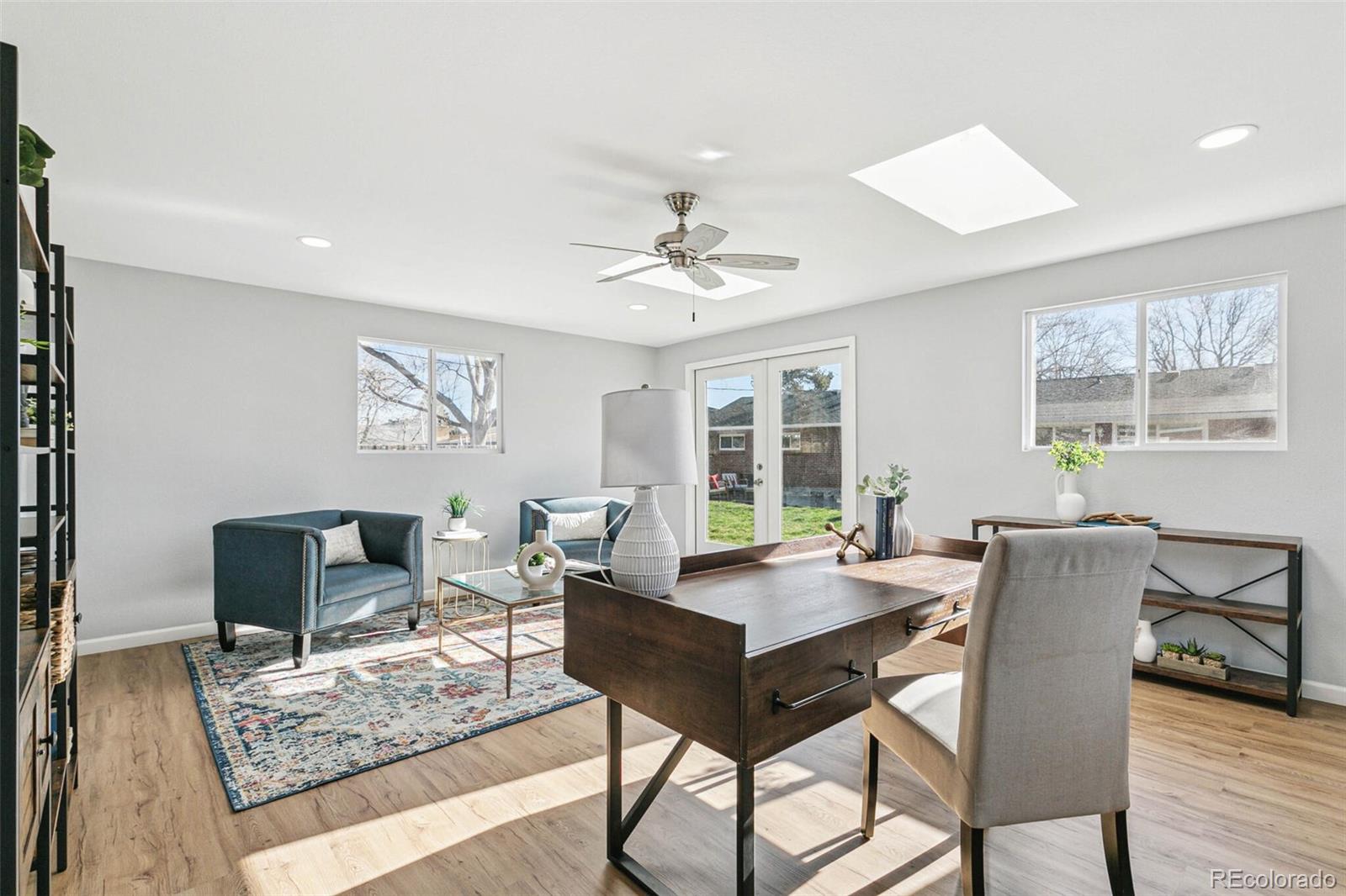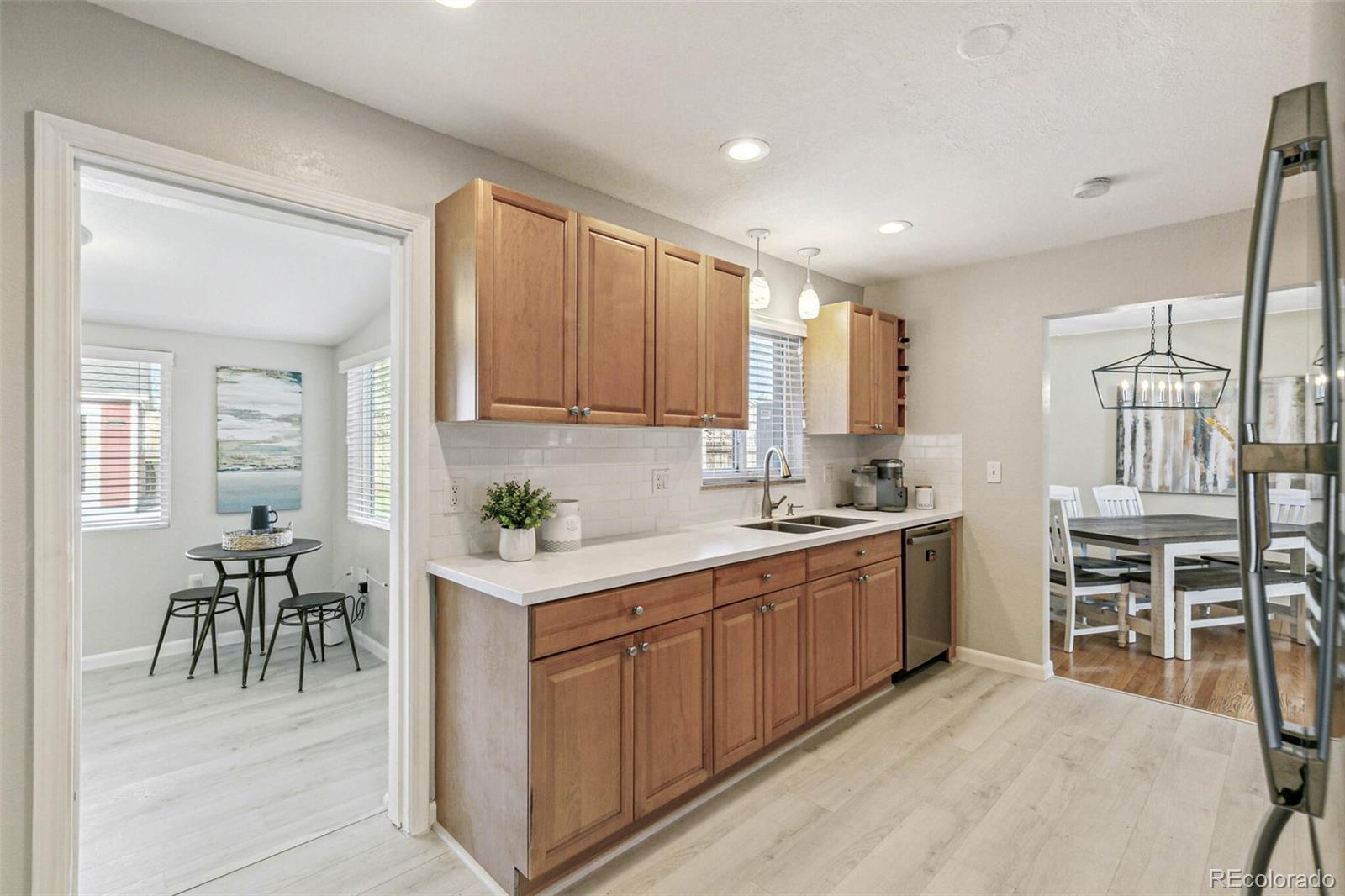 Nestled on an oversized lot in Wheat Ridge, this charming mid-century red brick ranch has been lovingly updated and maintained. Step inside to find coved ceilings, hardwood floors, and an open floor plan, creating a warm and inviting atmosphere throughout the main living areas. The kitchen has been tastefully updated with new countertops, stainless steel appliances, and brand new flooring. Enjoy a finished sunroom that provides additional living space and serves as a quiet retreat with west-facing windows framing picturesque Colorado sunsets. Three good-sized bedrooms, each outfitted with custom storage systems in the closets to maximize space and organization. Primary bath recently updated. Discover an ADDITIONAL 320 SF of living space in the newly constructed STUDIO at the rear of the property. Perfect for a home office, art studio, game room, playroom or gym, this space opens up a world of possibilities. Situated on almost a quarter acre, the backyard is a true sanctuary featuring a cobblestone patio, mature shade trees, and a perennial garden adorned with lilies and roses, offering tranquility and beauty. Attached garage plus additional parking pad in back and oversized driveway. Major system updates include new electrical panel (2022), new A/C (2021), added split system in sunroom, added additional water heater, roof replaced in 2017. Enjoy easy access to the Clear Creek Trail, Anderson Park, Ridge at 38th shopping and dining, Olde Town Arvada and the vibrant Tennyson Street corridor. Quick connection to I-70 and proximity to light rail makes commuting to downtown Denver or heading to the mountains a breeze. You will love living here!