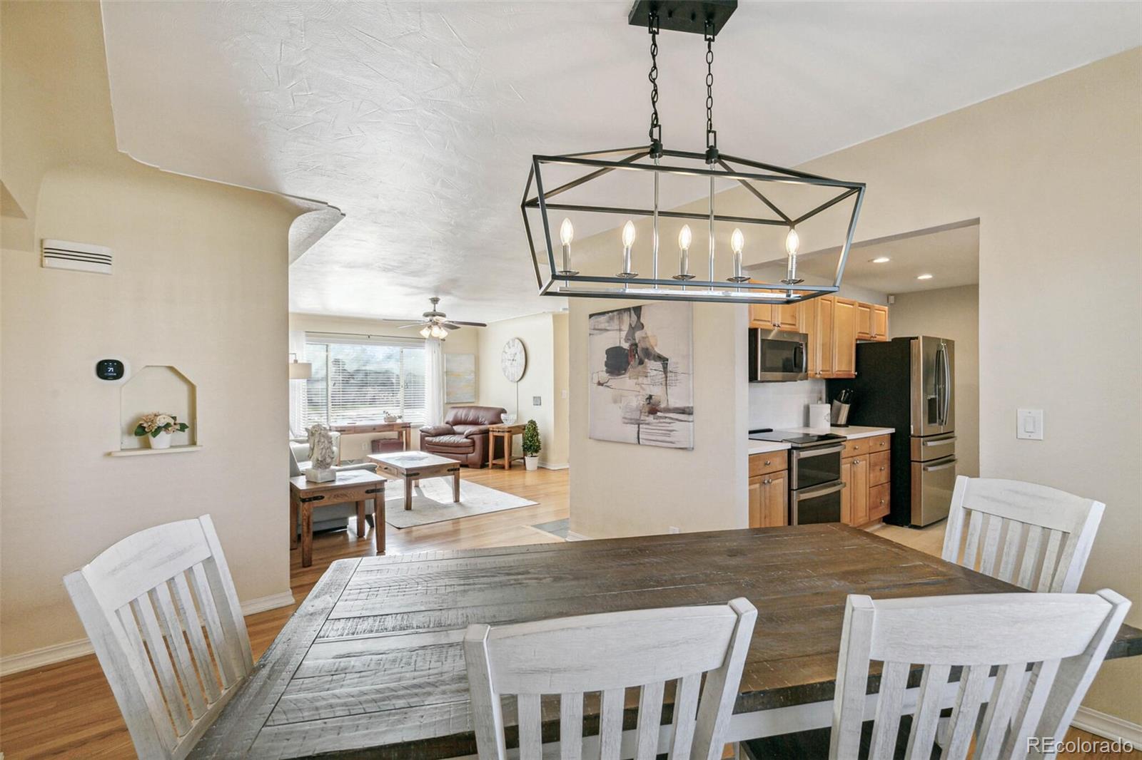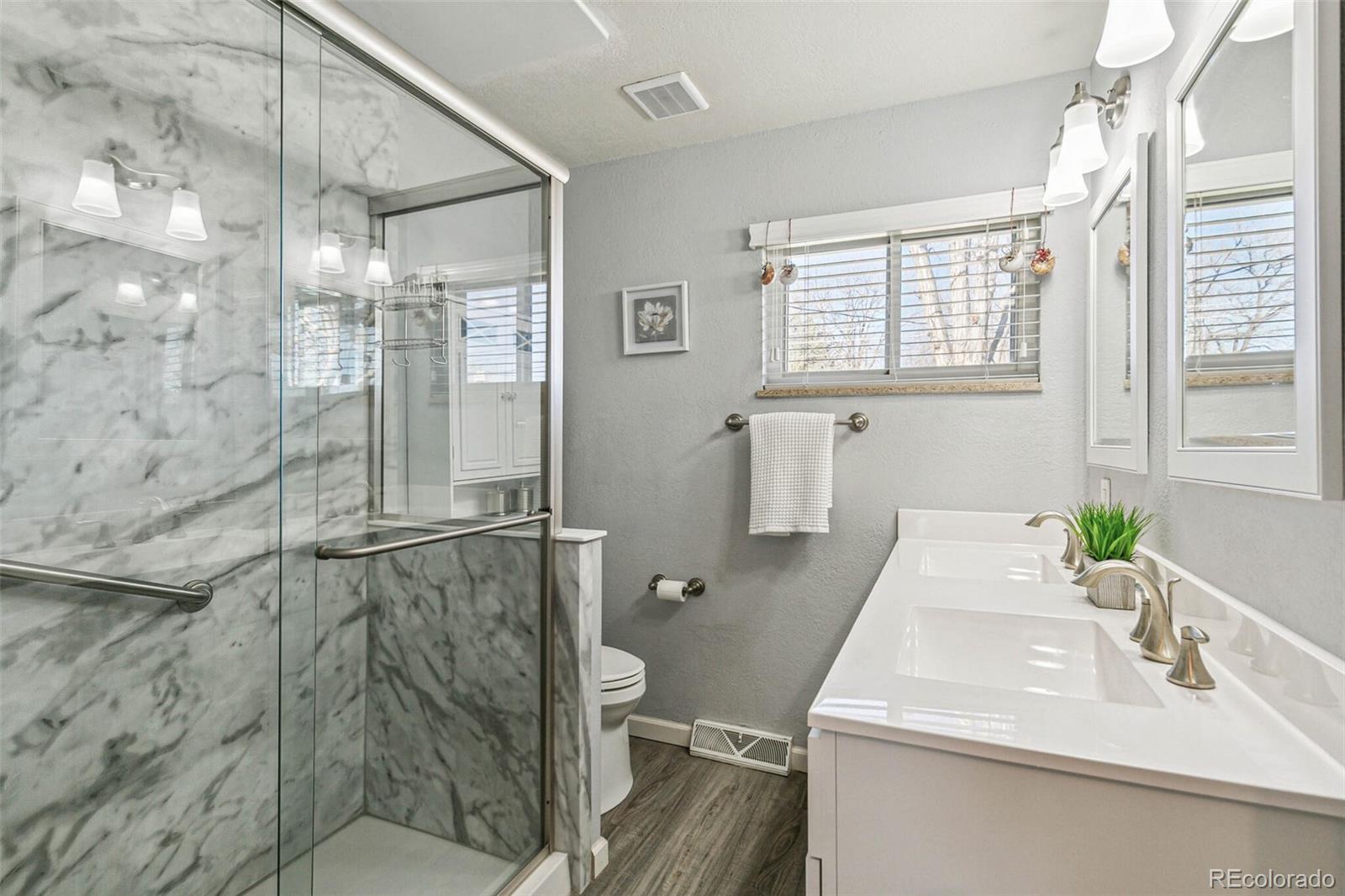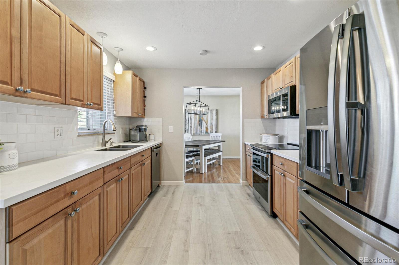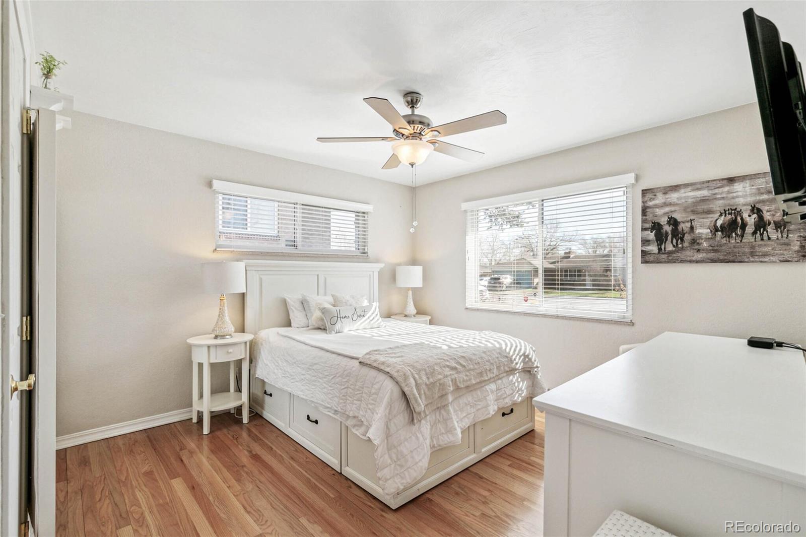 Nestled on an oversized lot in Wheat Ridge, this charming mid-century red brick ranch has been lovingly updated and maintained. Step inside to find coved ceilings, hardwood floors, and an open floor plan, creating a warm and inviting atmosphere throughout the main living areas. The kitchen has been tastefully updated with new countertops, stainless steel appliances, and brand new flooring. Enjoy a finished sunroom that provides additional living space and serves as a quiet retreat with west-facing windows framing picturesque Colorado sunsets. Three good-sized bedrooms, each outfitted with custom storage systems in the closets to maximize space and organization. Primary bath recently updated. Discover an ADDITIONAL 320 SF of living space in the newly constructed STUDIO at the rear of the property. Perfect for a home office, art studio, game room, playroom or gym, this space opens up a world of possibilities. Situated on almost a quarter acre, the backyard is a true sanctuary featuring a cobblestone patio, mature shade trees, and a perennial garden adorned with lilies and roses, offering tranquility and beauty. Attached garage plus additional parking pad in back and oversized driveway. Major system updates include new electrical panel (2022), new A/C (2021), added split system in sunroom, added additional water heater, roof replaced in 2017. Enjoy easy access to the Clear Creek Trail, Anderson Park, Ridge at 38th shopping and dining, Olde Town Arvada and the vibrant Tennyson Street corridor. Quick connection to I-70 and proximity to light rail makes commuting to downtown Denver or heading to the mountains a breeze. You will love living here!